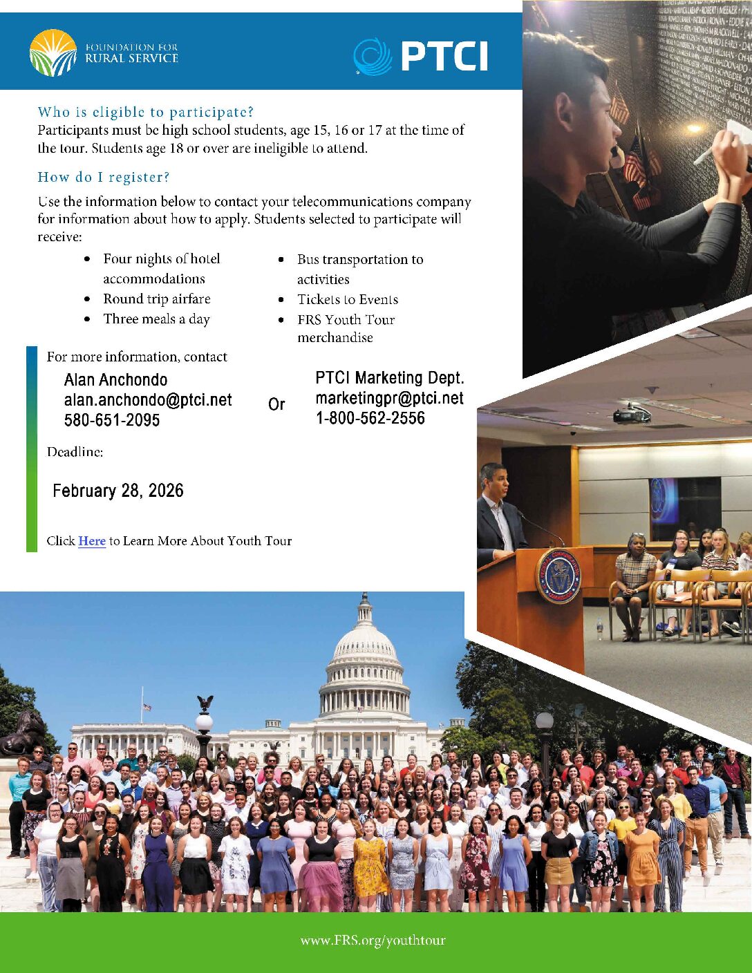 Students must live in PTCI's service area and be between the ages of 15-17 at the time of the trip (June 1, 2026 - June 5, 2026.)