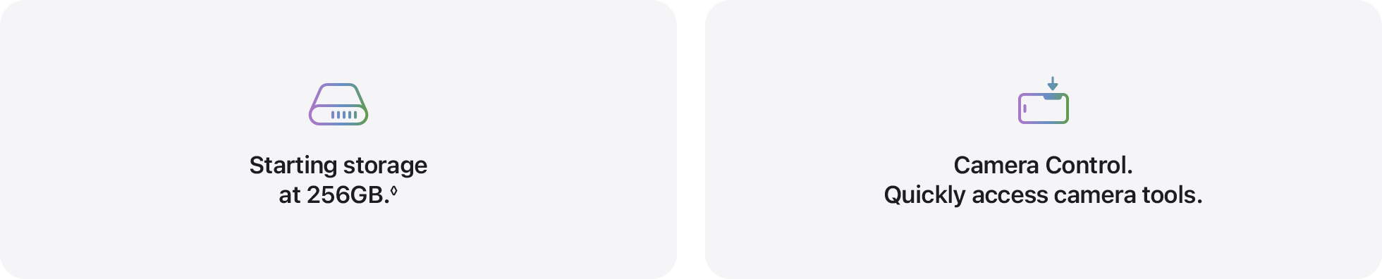 USB Transfer Speed: 20x faster transfers for iPhone 17 Pro models with USB 3 compared with USB 2. USB 3 cable with 10Gb/s speed required. 100 Percent Fiber-Based Packaging: Based on retail packaging as shipped by Apple. Breakdown of U.S. retail packaging by weight. Adhesives, inks, and coatings are excluded from the calculations of plastic content and packaging weight.